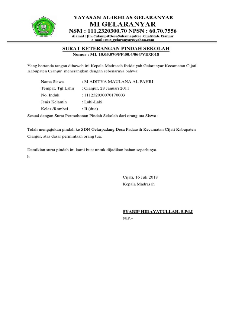 Contoh surat keterangan pindah induk. We did not find results for: Check spelling or type a new query. Maybe you would like to learn more about one of these?